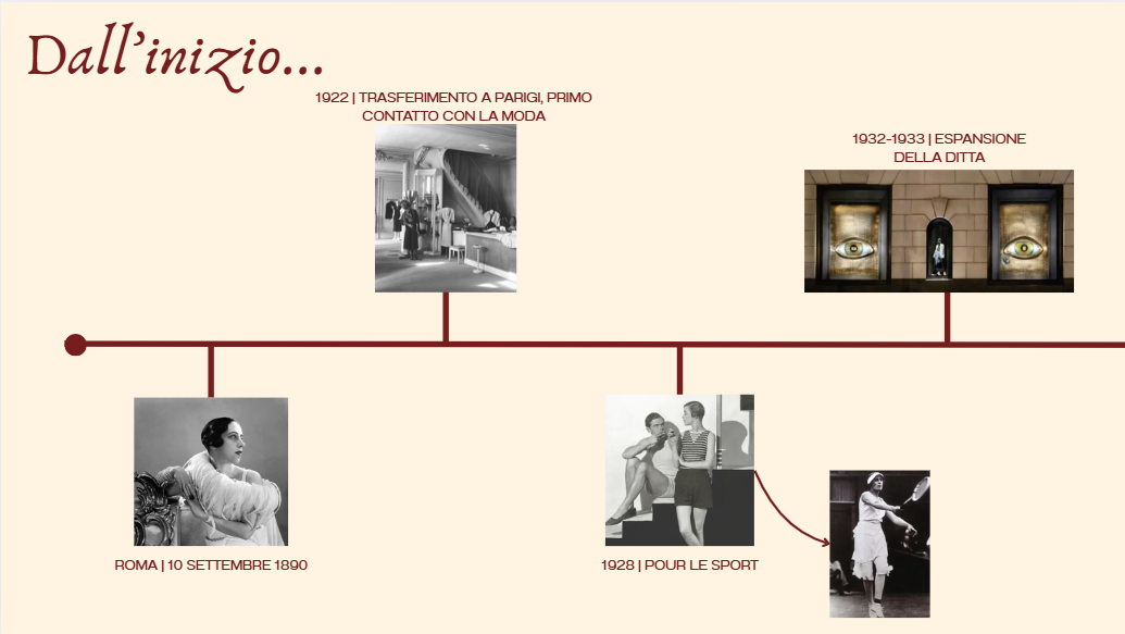 La fondatrice della marca è Elsa Schiaparelli, nata Elsa Luisa Giovanna Maria Schiaparelli a Roma il 10 settembre 1890 al Palazzo Corsini – proveniva quindi da una famiglia aristocratica.